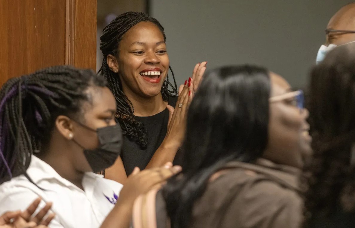 Students began celebrating immediately after the vote was announced. Johnson said her students have been invested in this application process and have provided input at points, particularly the students who were present as they will be the first graduating class of the high school.