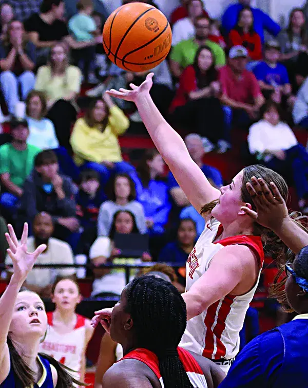 The Sebastopol Lady Bobcats defeated Bogue Chitto to advance to the third round of the playoffs. The Lady Bobcats will take on Simmons today, Wednesday, Feb. 25, in Raymond. School will dismiss early at noon to allow fans to travel to Raymond for the 4:00 p.m. match. Marlee Smith drives for a basket in Sebastopol’s 53-35 Victory.