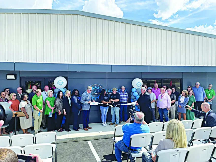 A large crowed gathered at noon last Tuesday in front of the Scott County School District’s brand new STEAM (Science, Technology, Engineering, Arts, and Math) Academy for the official ribbon cutting of the state-of-the-art facility.