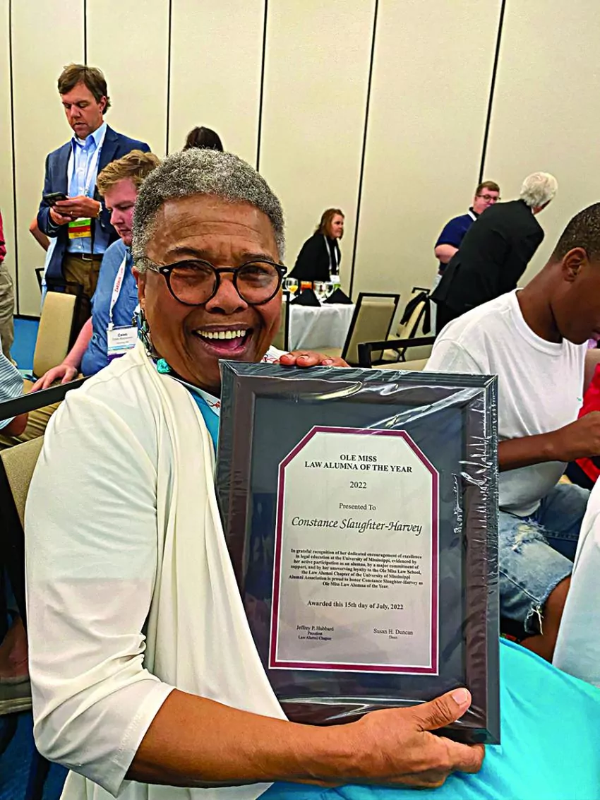 University of Mississippi School of Law alumna Constance Slaughter-Harvey received the Law Alumna of the Year Award July 15, becoming the first African American female to receive the award.