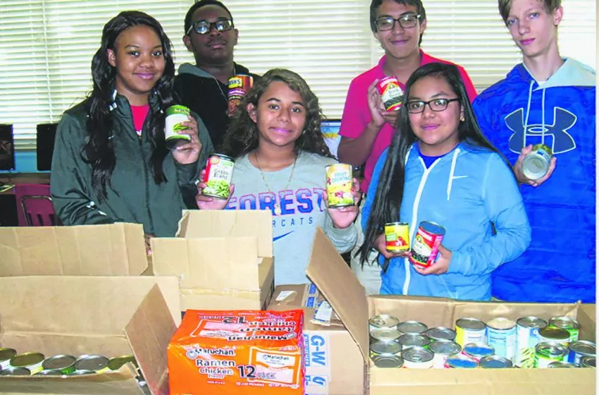 Forest High School’s Technology Student Association recently held a community service project. They held a canned food drive in November. The project benefited the Carlisle Crisis Center. Pictured on the front row are Nicedrianna Gray, Karen Calzadilla and Joselyn Jose. Back, Hezekiah Robinson, Joshua Gonzalaz and Josh Harper.