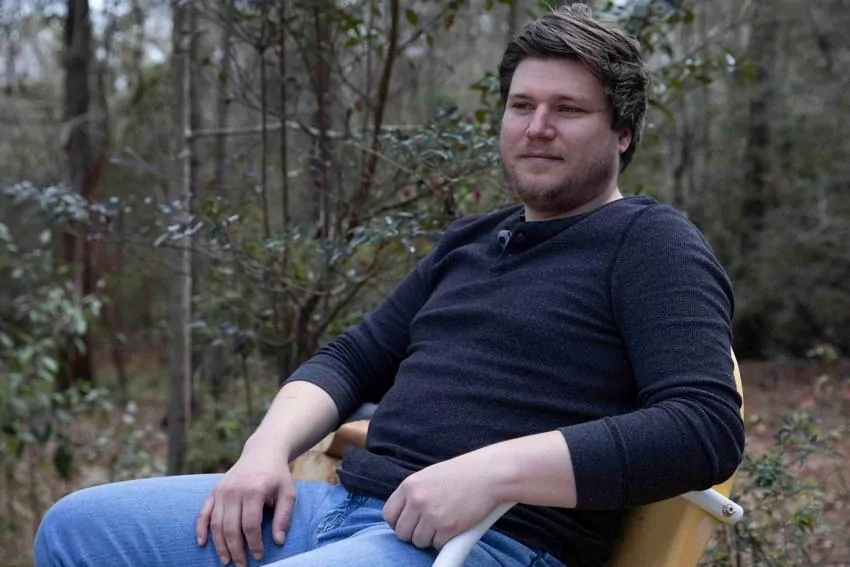 William Pittman enjoys a spring afternoon in the wooded property of his home in Columbia, Miss., on March 14, 2022. Pittman hopes the limited scope of use and practice in Mississippi for newly legalised medical marijuana will be expanded. Sarah Warnock/MCIR
