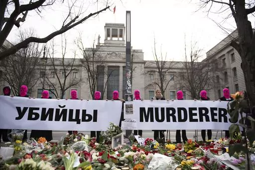 In Berlin, members of the Russian activist group Pussy Riot held a demonstration outside of the Russian Embassy, holding banners that read “murderers” in English and Russian.