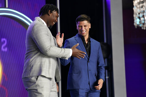 He was the fourth quarterback taken in the draft following Pitt’s Kenny Pickett, Cincinnati’s Desmond Ridder and Liberty’s Malik Willis. The Panthers gave up this year’s fourth round pick (No. 137) and next year’s third-round pick to the New England Patriots to move up to 94.