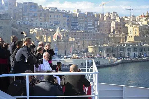 Later Saturday, Francis travelled by catamaran ferry to the island of Gozo, making his own the Mediterranean seafaring tradition to celebrate a prayer meeting at Malta’s national shrine. Flanked by two Maltese churchmen who are key aides at the Vatican, Francis sat on a white chair on deck for the hour-long trip and was welcomed by thundering canons as the ship came in Gozo’s port.