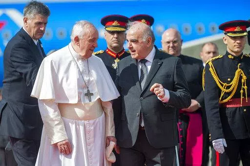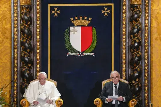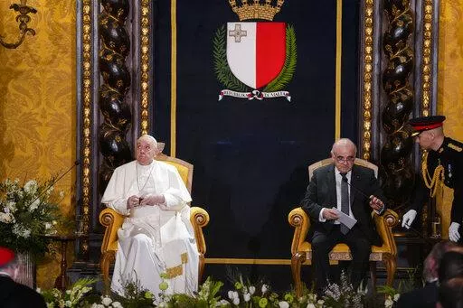 Francis also said the war had pained his heart so much that he sometimes forgets about the pain in his knees. Francis has been suffering for months from a strained ligament in his right knee. The inflammation got so bad that the Vatican arranged for a tarmac elevator to get him on and off the plane for Saturday’s flight to Malta, and his limp was more pronounced Saturday.