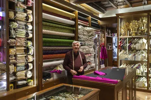“Francis immediately went on a much simpler and essential style,” he explained as he cut the fabric for a bishop’s garment in his historic workshop, steps away from the Vatican.