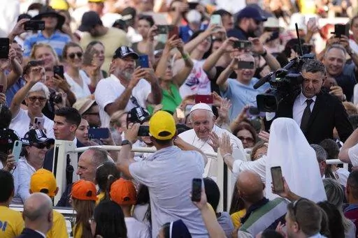 ROME (AP) — Pope Francis celebrated families Saturday and urged them to shun “selfish” decisions that are indifferent to life as he closed out a big Vatican rally a day after the U.S. Supreme Court ended constitutional protections for abortion.