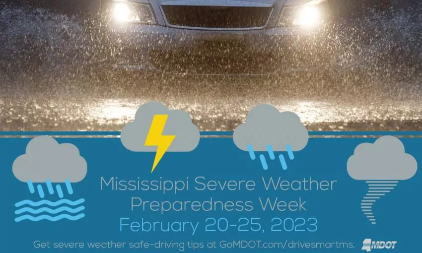 To prepare Mississippians for severe weather season in March, April and May, Gov. Tate Reeves declared Feb. 20-25, 2023, as Spring Severe Weather Preparedness Week. The purpose of this week is to spread awareness of the potential for severe weather in Mississippi, as well as provide information on ways that Mississippians can protect themselves in the event of severe weather.