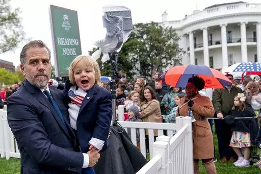 Hunter Biden introduced himself to people sitting in the reading area, and to others lined up on the other side of a fence, at times carrying his infant son Beau in his arms.
