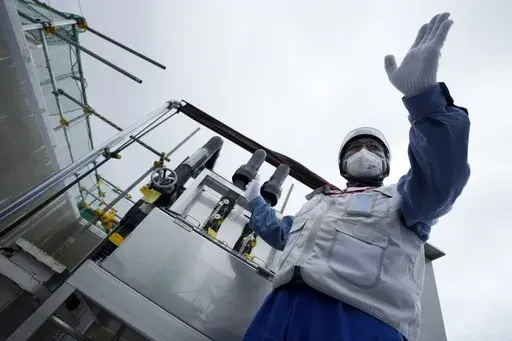OKUMA, Japan (AP) — At a small section of the Fukushima Daiichi nuclear plant’s central control room, the treated water transfer switch is on. A graph on a computer monitor nearby shows a steady decrease of water levels as treated radioactive wastewater is diluted and released into the Pacific Ocean.