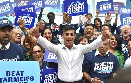 The former U.K. Treasury chief was runner-up to Liz Truss in the contest to replace the scandal-plagued Boris Johnson as Conservative Party leader and prime minister. But Truss quit after a turbulent 45-day term, and Johnson has abandoned a comeback attempt. That left Sunak out front, and he won the race Monday to be leader of the Conservative Party and will assume the office he missed out on less than two months ago.