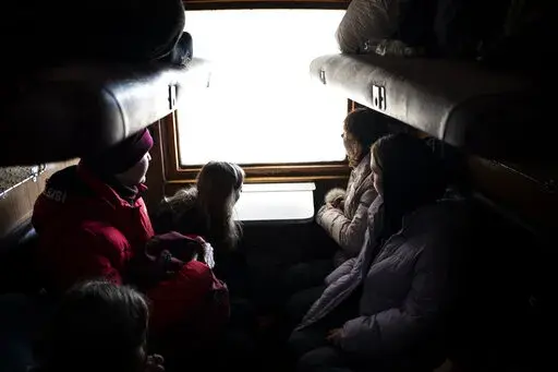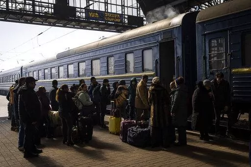 The city council said Sunday that nearly 40,000 people have used their own vehicles to leave the city via a humanitarian corridor over the past week — nearly 10% of its 430,000 population. Other fleeing residents arrived by train Sunday in Lviv.