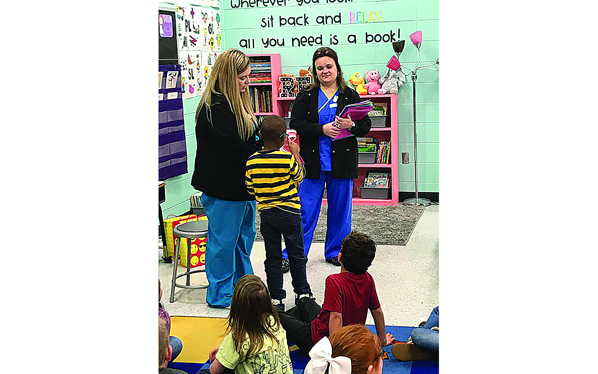 After graduation she will begin her pursuit of her last degree, which is that of becoming a dentist. Batte and Jordyn Nelson visited with Callie Thornhill, Cara Barber, and Morgan Lyles’ classes and taught them how to correctly brush and floss each day. She used a model that the students loved provided new dental hygiene items donated by Woods Dental Clinic for each student.
