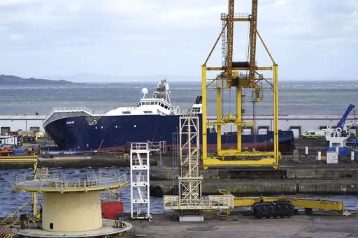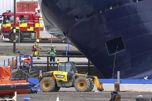 LONDON (AP) — A large ship tipped over while dry-docked in Scotland, injuring 25 people Wednesday, emergency workers said.