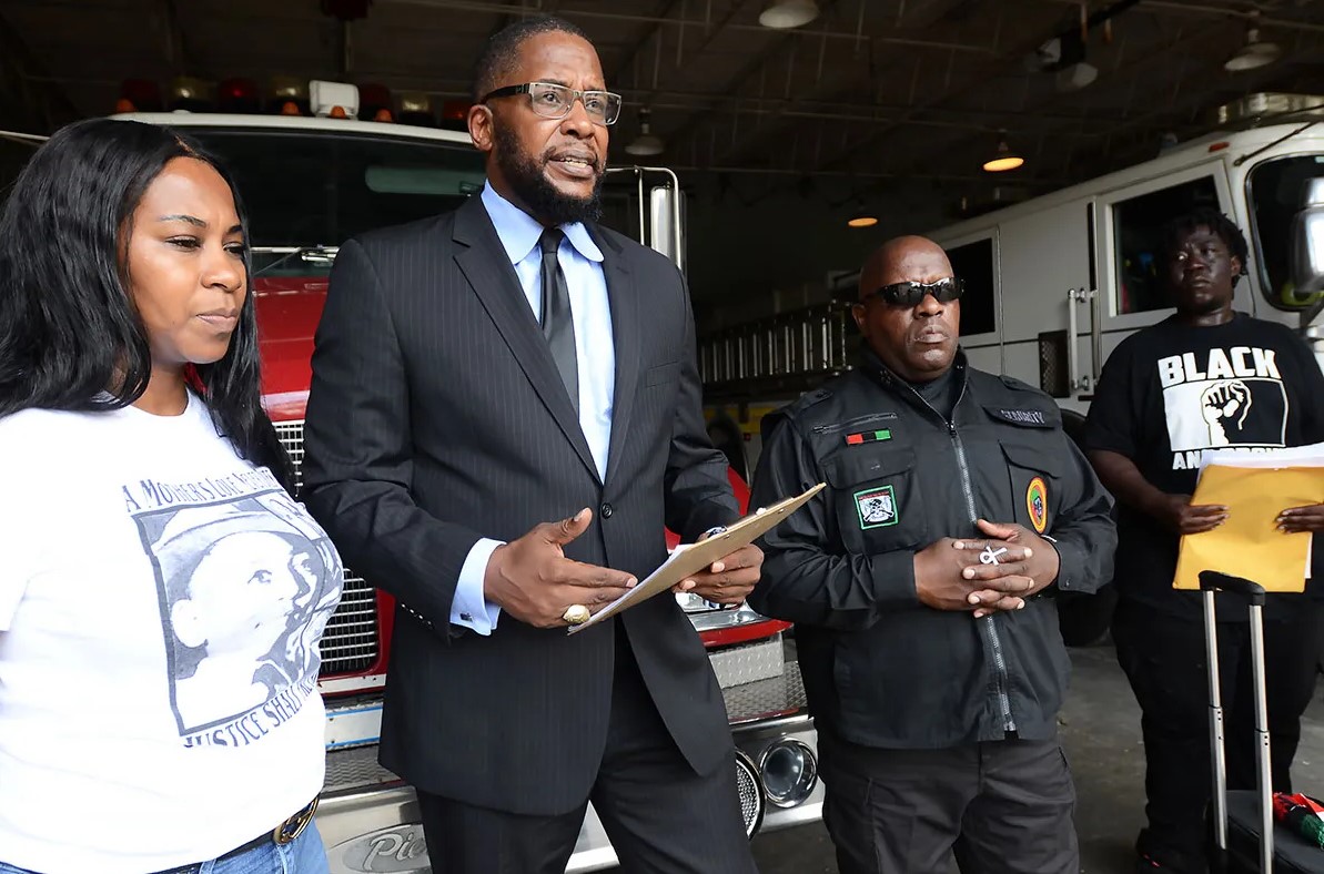 Civil rights Attorney Malik Shabazz announced Monday outside the Lexington Police Department that Washington, D.C.- based legal group Black Lawyers for Justice plans to review the police department and how it operated under Dobbins.