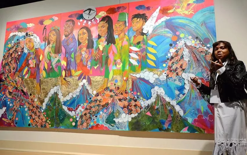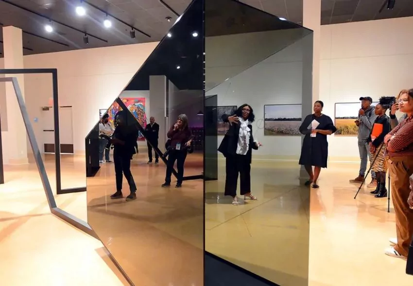 The exhibit features work by acclaimed Black artists, including Akea Brionne, Mark Bradford, Zoë Charlton, Larry W. Cook, Torkwase Dyson, Theaster Gates Jr., Allison Janae Hamilton, Leslie Hewitt, Steffani Jemison, Robert Pruitt, Jamea Richmond-Edwards, and Carrie Mae Weems. The works explore “profound impact of the Great Migration on the social and cultural life of the United States from historical and personal perspectives,” museum officials explained.