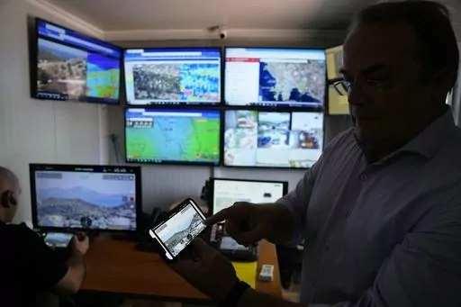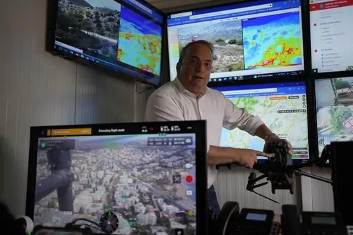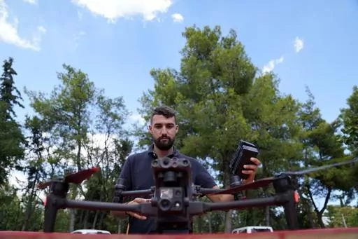 The system’s innovation, said Emmanouil Angelakis, managing director of the company operating the drones, is that it includes specialized personnel, software, servers and satellite antenna so “drones, day and night, can scan all the forest areas with thermal cameras and sensors and give live images and coordinates of where a fire starts.”