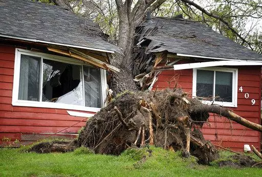 Wednesday's storm in the Upper Midwest left tens of thousands of homes and businesses without power into Thursday. More potentially severe weather was forecast into Thursday evening that could bring hail, high winds and tornadoes from the Dakotas and Minnesota into other parts of the Midwest, the Storm Prediction Center said.