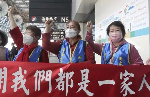 On the other side, a small group of people from the pro-unification camp also came to the airport to show their support. “Cross-strait relations are like flowers blossoming in spring and both sides are a family," they shouted.