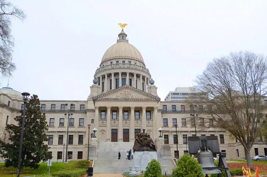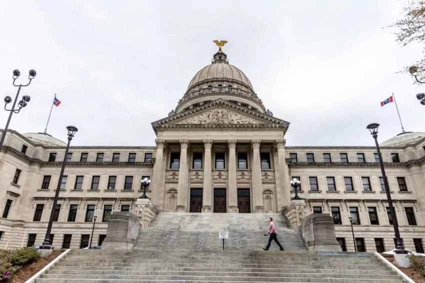 Sen. Buck Clarke, R-Hollandale and Senate Appropriations chairman, left, shares a laugh with Mississippi Commissioner of Insurance Mike Chaney during the 2019 legislative session in Jackson Wednesday, January 9, 2019. Credit: Eric J. Shelton, Mississippi Today/Report For America
