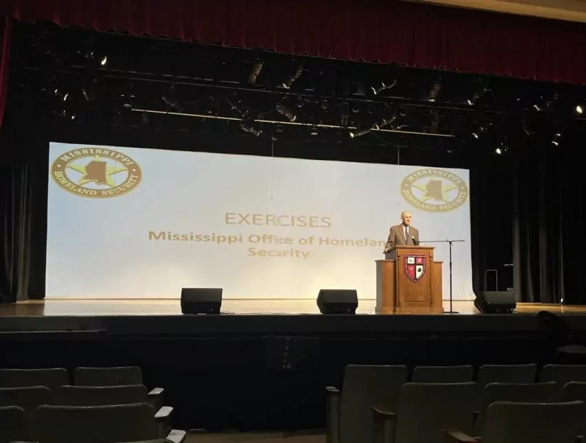 MASS Executive Director Phillip Burchfield addresses south Mississippi superintendents, school safety officers and media relations staff at a training Thursday, Oct. 27, 2022, at William Carey University in Hattiesburg on how to respond to an active shooter situation. Mina Corpuz/Mississippi Today