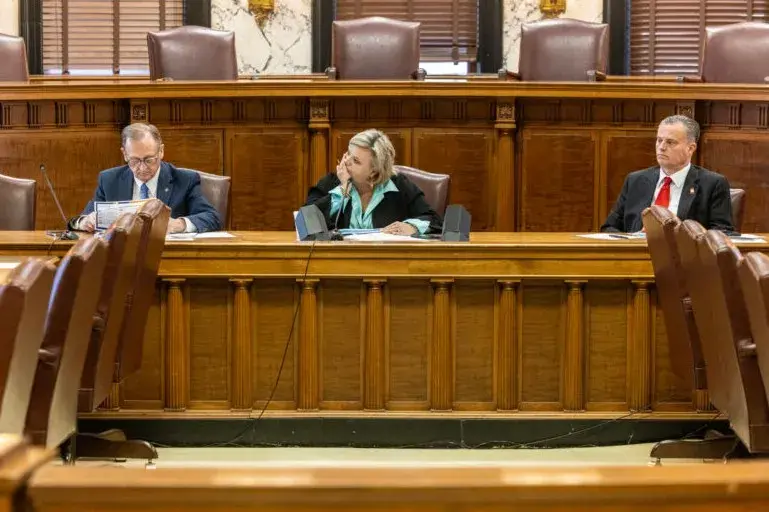 Sen. Dean Kirby, from left, Sen. Nicole Boyd and Sen. Chad McMahan listen as State Health Officer Dr. Daniel Edney speaks during the state Senate Women, Children, and Families Study Committee meeting at the Capitol in Jackson on Tuesday, Dec. 9, 2025. Credit: Eric Shelton/Mississippi Today