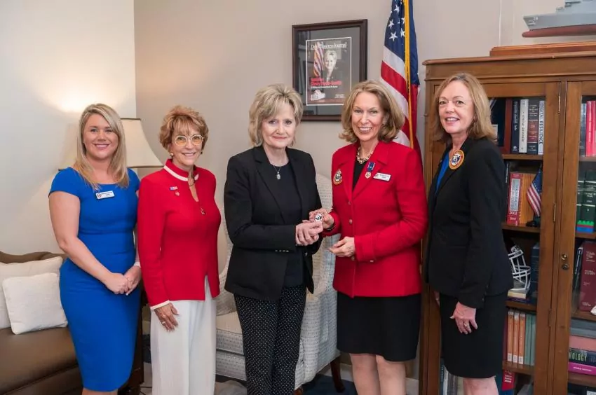 U.S. Senator Cindy Hyde-Smith (R-Miss.) on Wednesday met with Tragedy Assistance Program For Survivors (TAPS) representatives following her introduction of a resolution designating Sept. 19-25, 2021, as Gold Star Families Remembrance Week. Pictured from left: Ashlynne Haycock, TAPS deputy director; Dr. Lynda Davis, TAPS senior advisor; Bonnie Carroll, TAPS president and founder; and Candace Wheeler, TAPS director.