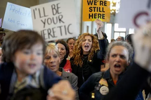 NASHVILLE, Tenn. (AP) — Protesters chanted “Blood on your hands” at Tennessee House Republicans on Tuesday after they passed a bill that would allow some teachers and staff to carry concealed handguns on public school grounds, and bar parents and other teachers from knowing who was armed.