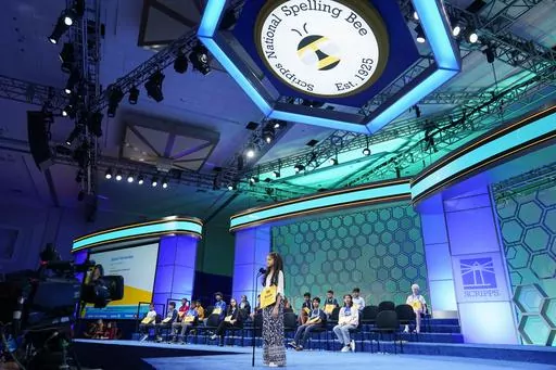 The bee began with television host Paul Loeffler — Corrie's brother — sending well wishes to 12-year-old Lance Sanchez of Guam, who was unable to travel to Washington to compete because the U.S. territory's airport was closed by Typhoon Mawar. Lance is a sixth-grader and has two years of eligibility remaining.