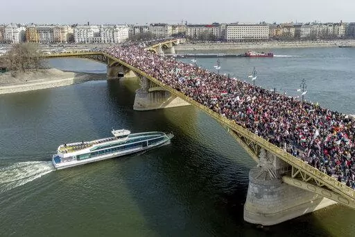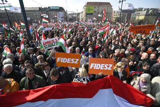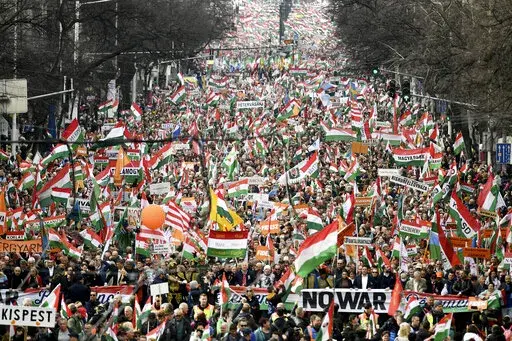 BUDAPEST, Hungary (AP) — Two mass rallies held by opposing political forces filled the streets of Hungary's capital on Tuesday in mutual displays of strength before the country's April 3 election, a contest that will determine whether populist Prime Minister Viktor Orban wins a fourth consecutive term.