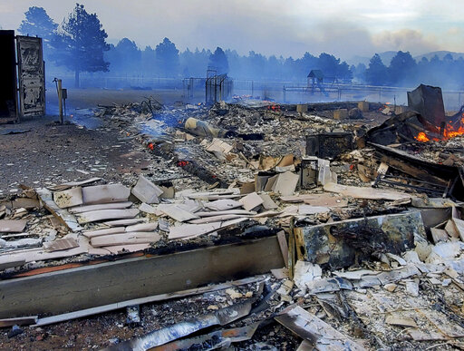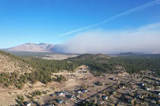 About 200 residents attended the community meeting Wednesday in Flagstaff at a middle school that's also being used as a shelter. Some lost their homes — part of the estimated 25 structures that have been lost — and were worried about finding temporary housing in a city where rental prices have exploded in recent years. One woman who was evacuated from the forest where she was camping wondered when she might be able to retrieve her things.